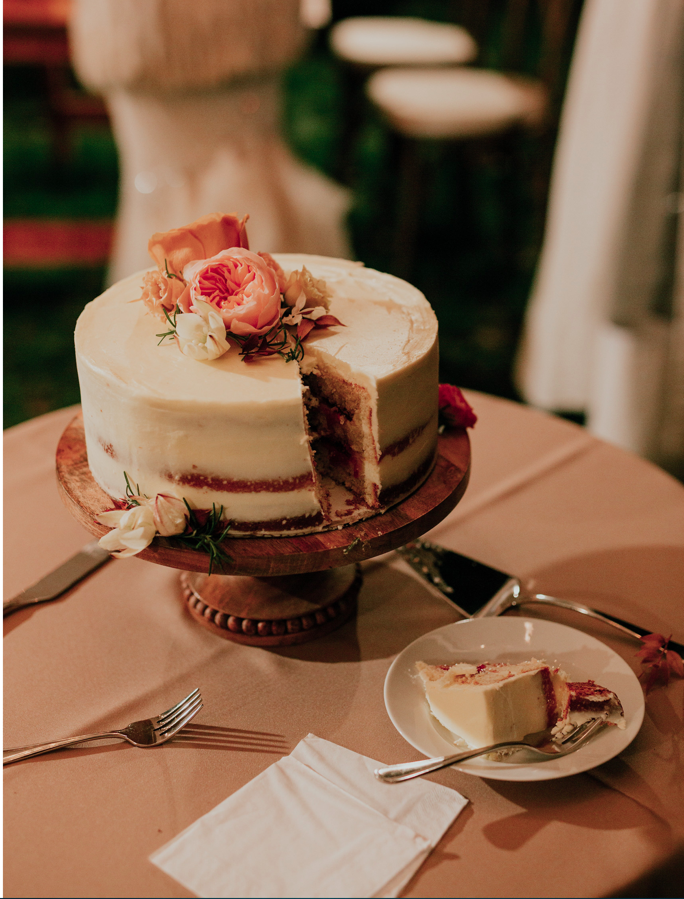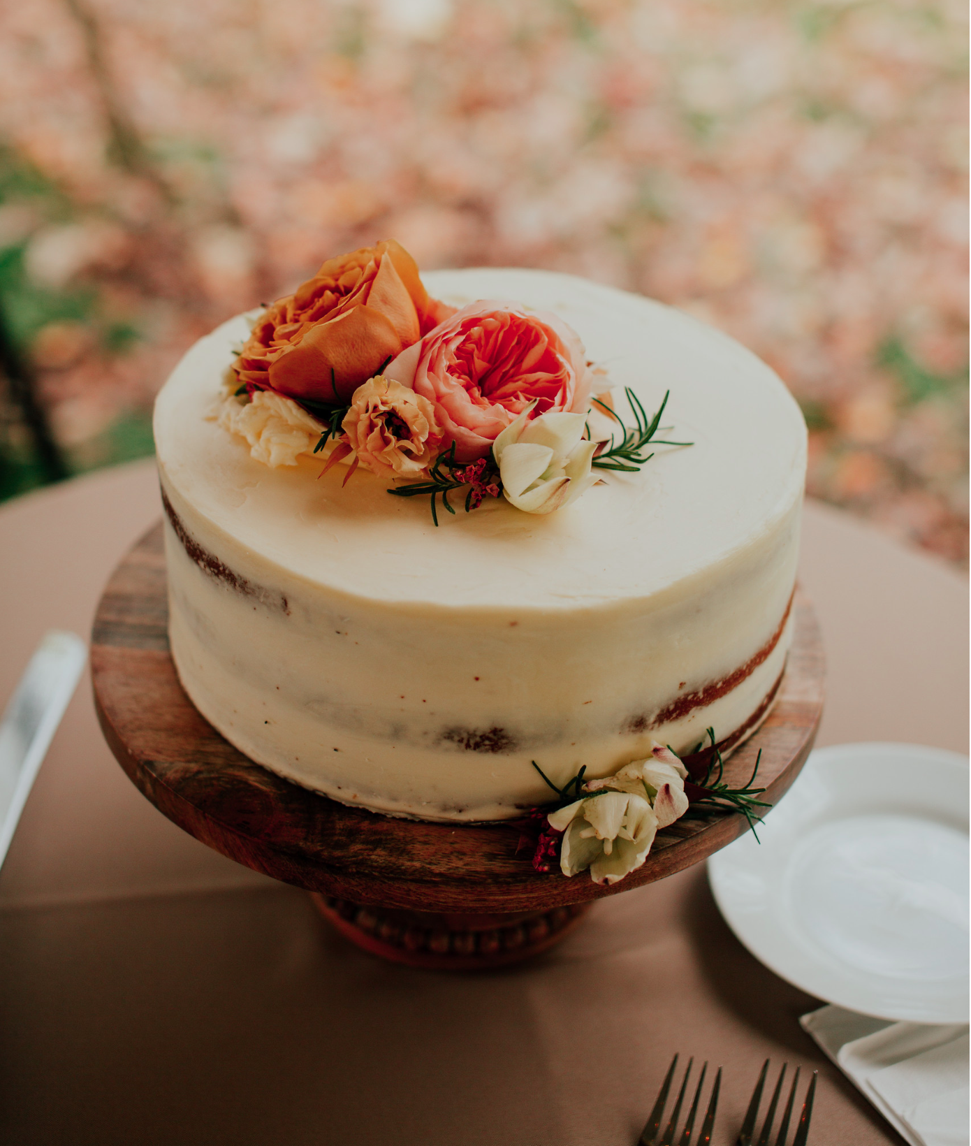 Our cakes are a collection of unique artisanal style. Full of fresh, homemade local ingredients, seasonal fruits, berries, and wild flowers, and a genuine love of baking that is promised to be swirled in each bite. Each of our wedding cakes are lightly decorated and can be single or multi-tier depending on your preference.